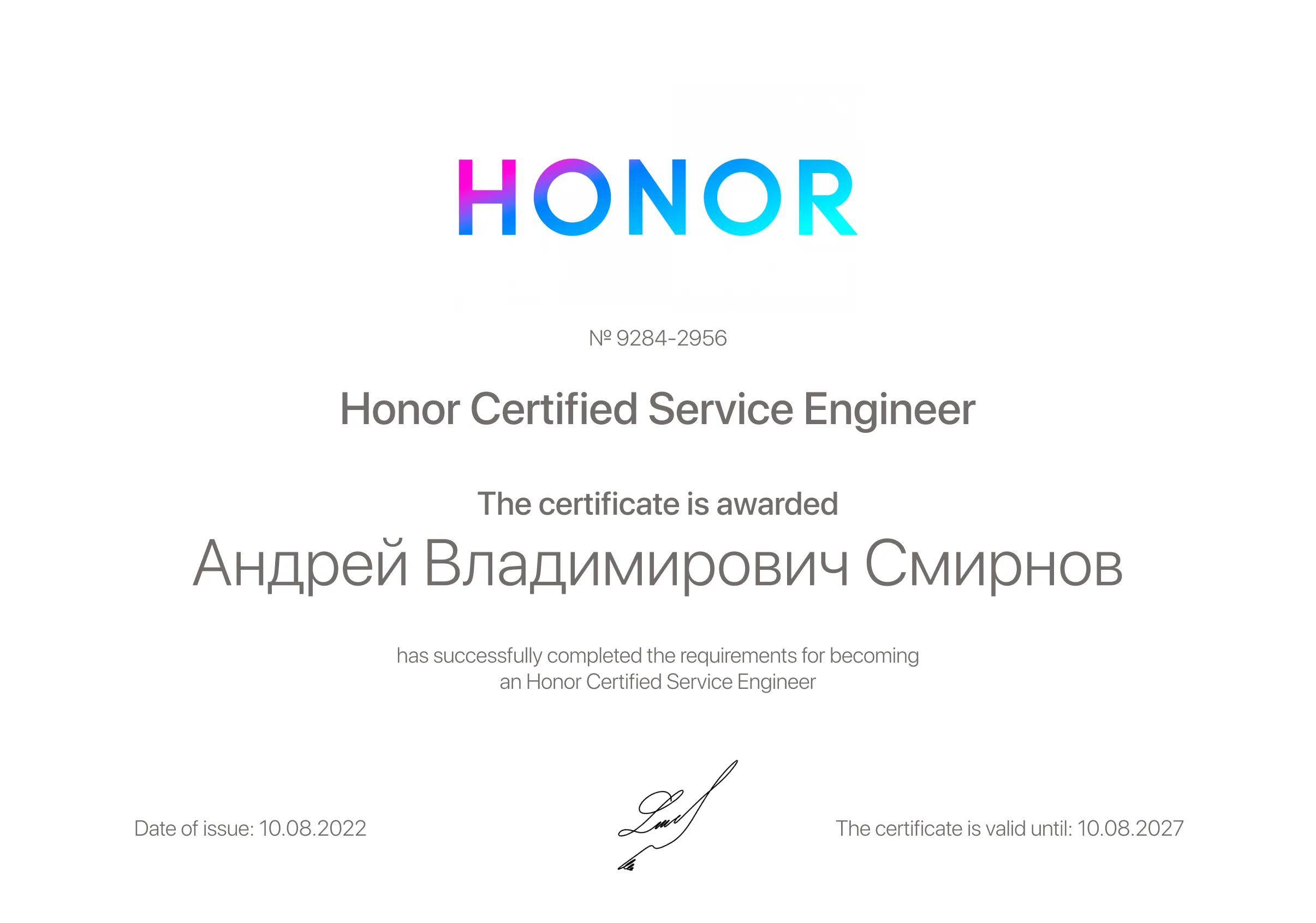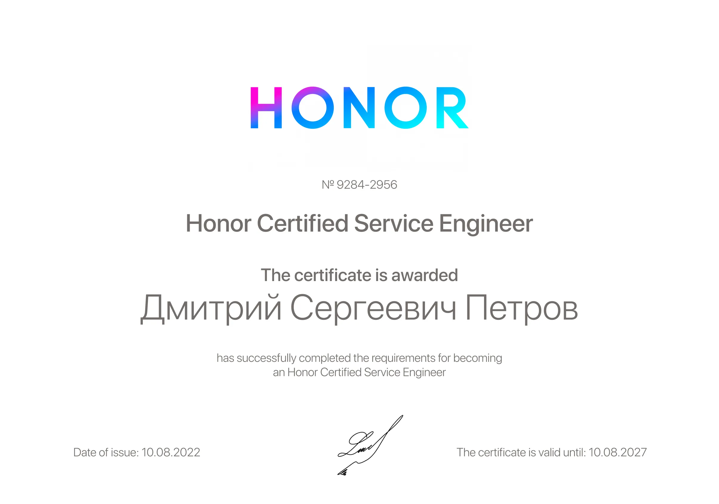 Предлагаем услуги по ремонту и обслуживанию любых устройств Honor после истечения на них гарантийного срока. Наш центр технического обслуживания является неавторизованным центром. Предложение цен на сайте не является публичной офертой. Все обозначения и упоминания торговой марки Хонор используются нами исключительно для информирования клиентов о предоставляемых услугах.
